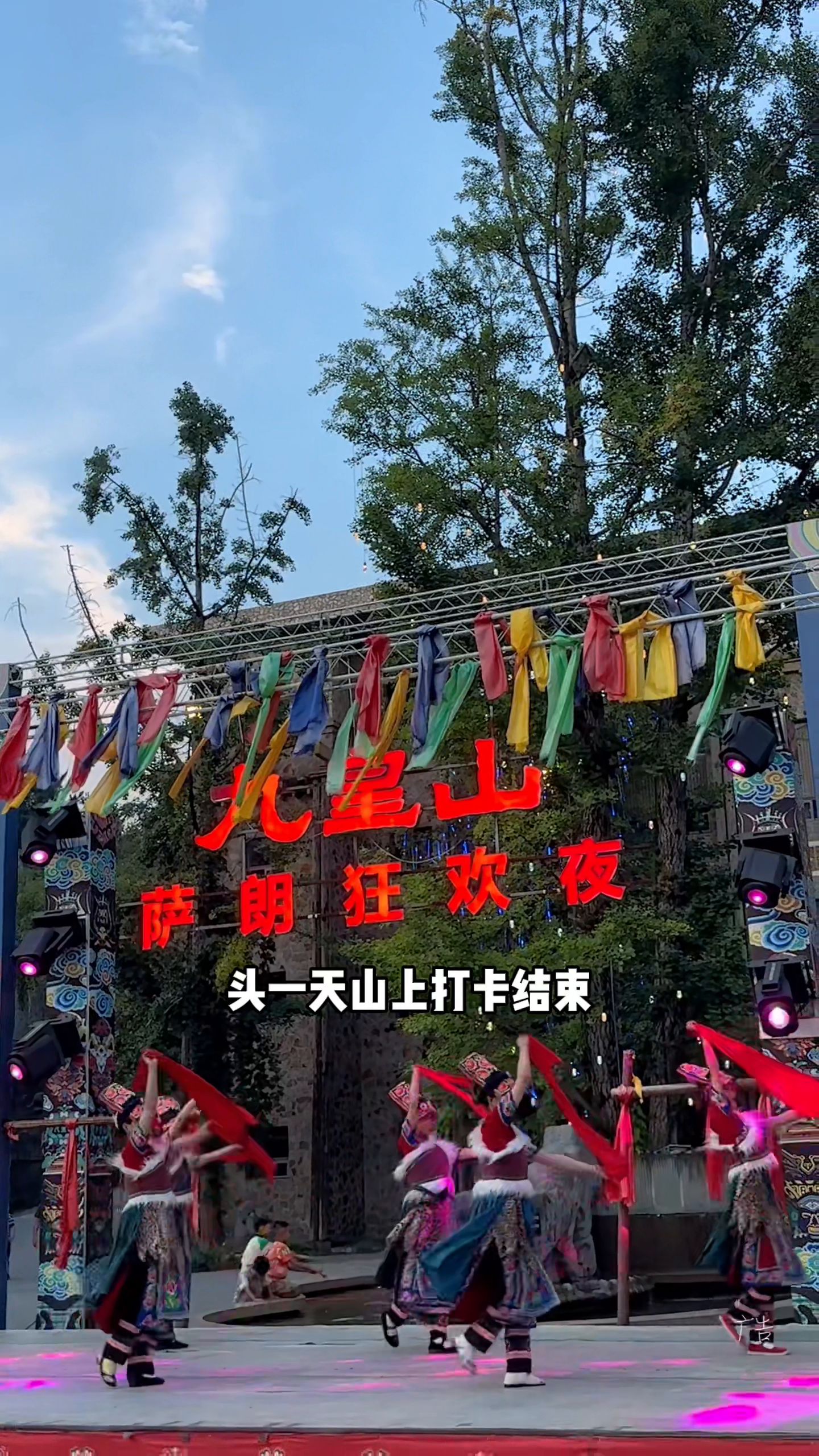 4. 头一天山上打卡结束,晚上七点半可以参加萨朗晚会,不仅可以看到各种精彩表演,还可以围着篝火一起跳舞。