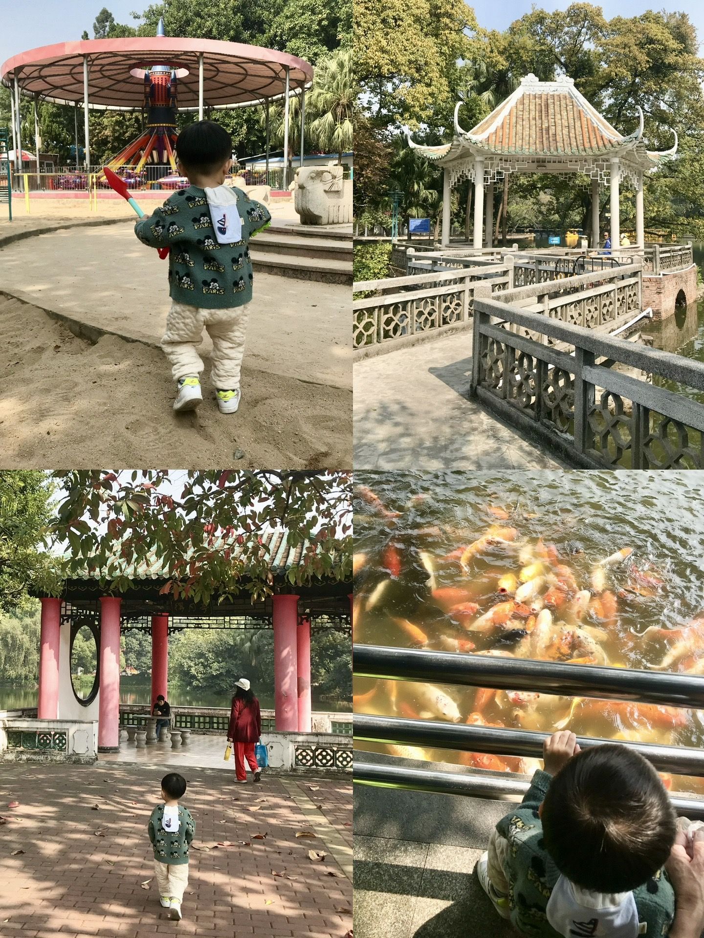 绿植很多的公园,里面有免费沙池可玩,喂食金鱼.还有个动物园有猴子、长颈鹿、斑马、羊驼、孔雀等(门票成人30、1.2m以下儿童免票)