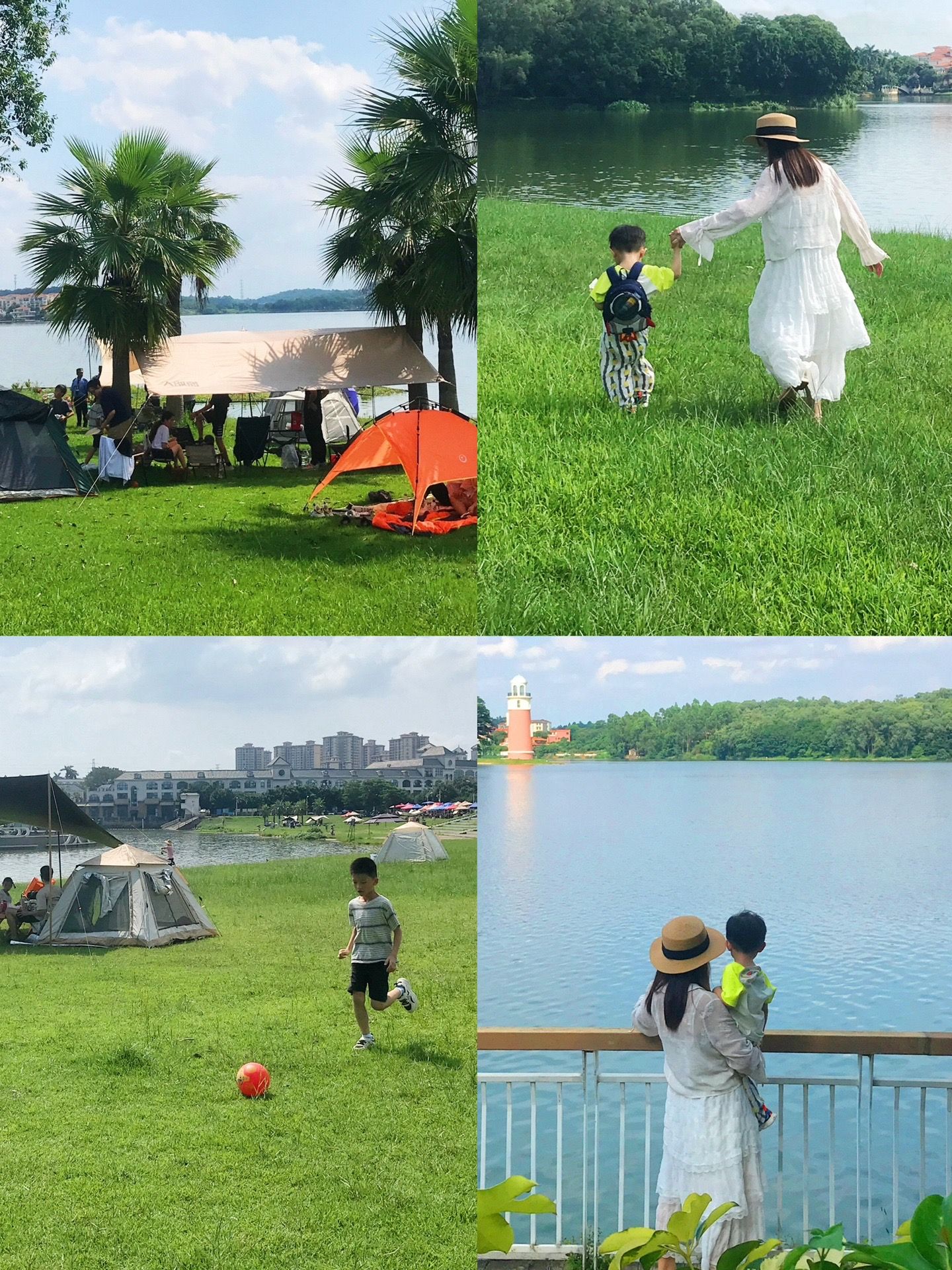 拥有大草地,环湖而建,喜欢来这里露营!还放风筝飞盘环湖骑行踢足球