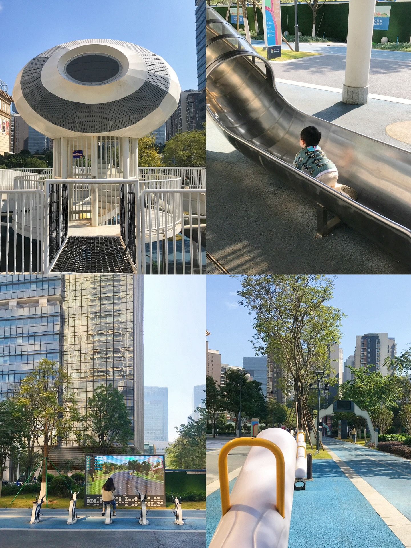 好看好玩的小公园,有各种儿童玩乐设施、滑梯、攀爬坡、篮球场...旁边就是商场,吃饭逛街很方便