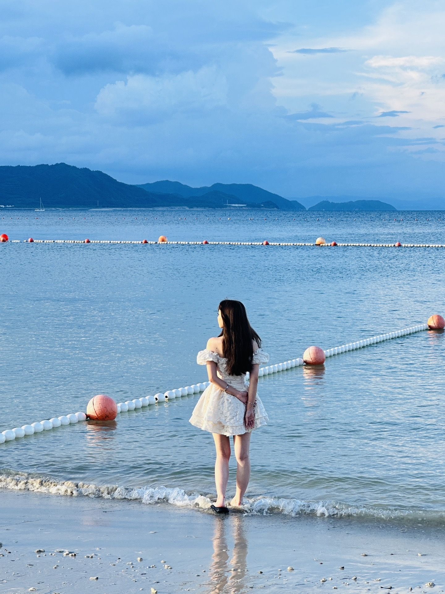 这里之前是私人海滩,今年才开放,沙子细软绵白,海水清澈透亮