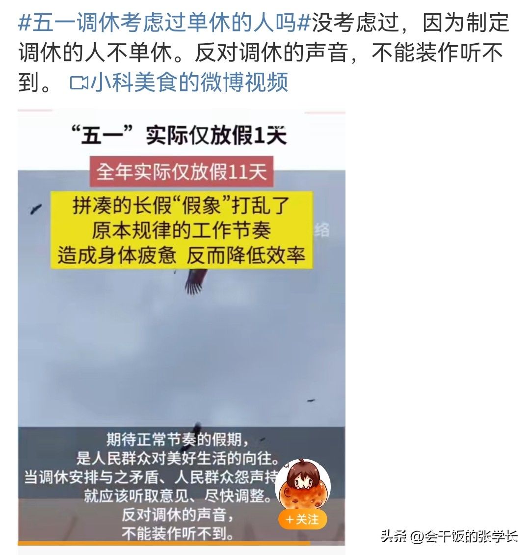 而“五一”的调休,无疑打乱了他们的节奏。为了这几天的假期,他们可能需要提前加班,甚至牺牲掉那个宝贵的单休日。这样一来,他们的休息时间不仅没有得到增加,反而被进一步压缩。