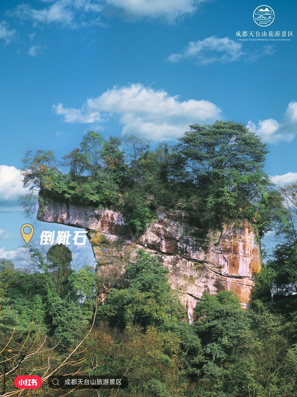 倒靴石因为整体形态酷似一只倒立的长靴鞋而得其名,绛红色的石质在阳光下更显壮观,巍然耸起,直指蓝天,能充分感受到倒靴石的独特魅力。