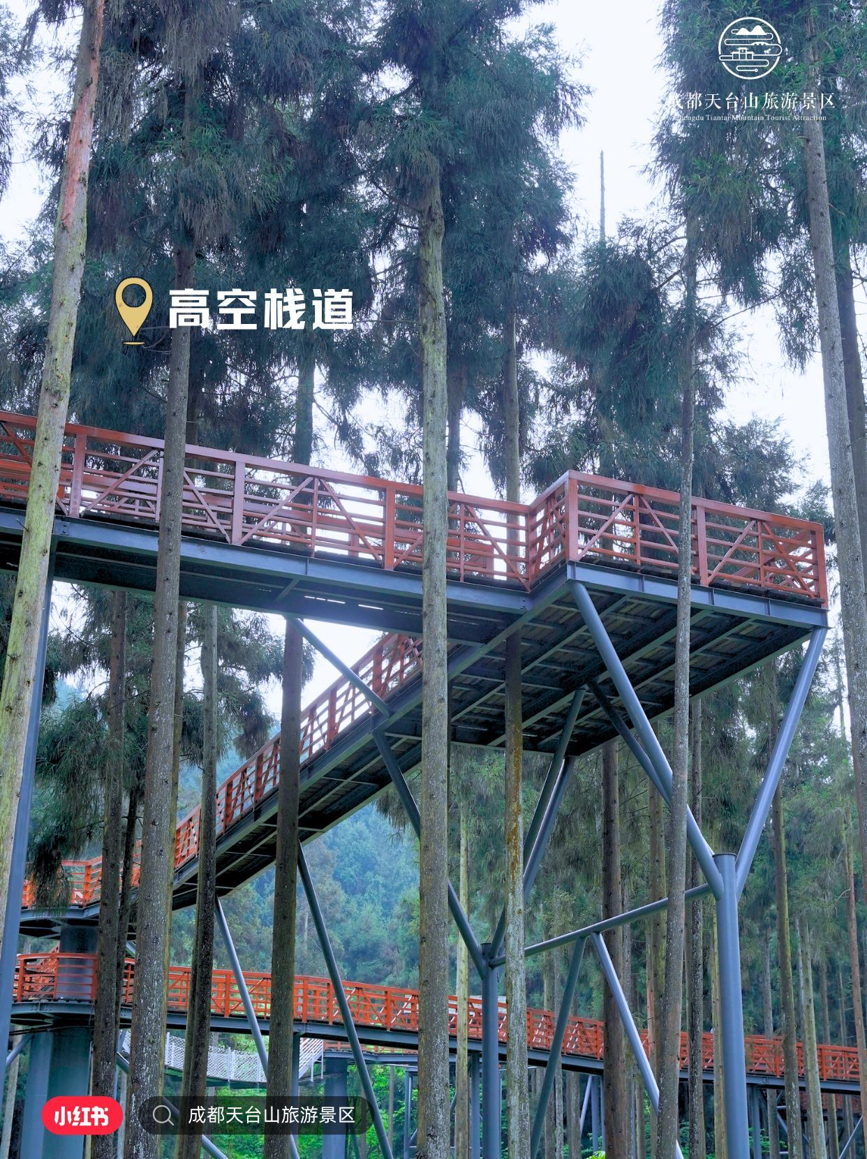 高空栈道蜿蜒穿梭于茂密的杉木林之中,仿佛一条空中走廊,将你带入了一个森林画廊的世界。漫步其间,每一步都充满了惊喜与震撼,四周的美景仿佛一幅幅精美的画卷,让人目不暇接。