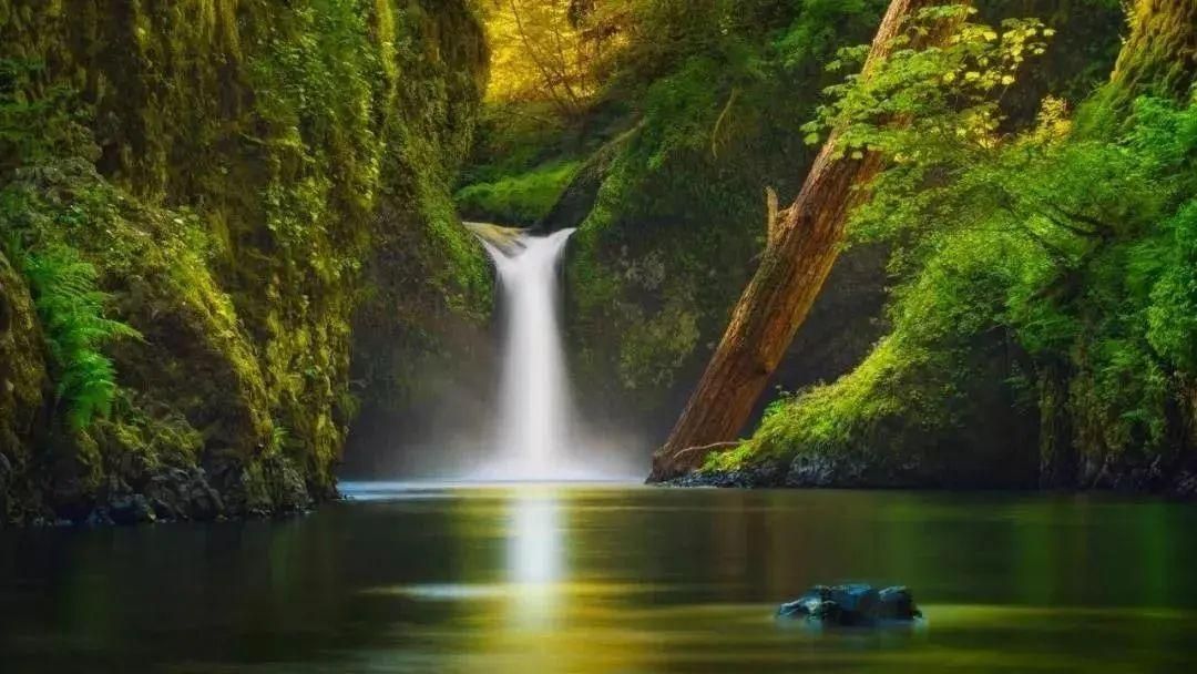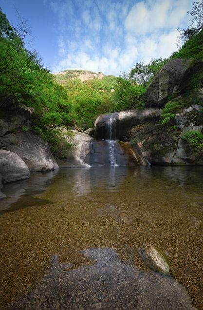 因为森林密布,四周都有山遮挡,置身其中,感受瀑布飞溅而下扑面而来的水滴,太凉快了~还可以在浅水滩耍耍水。