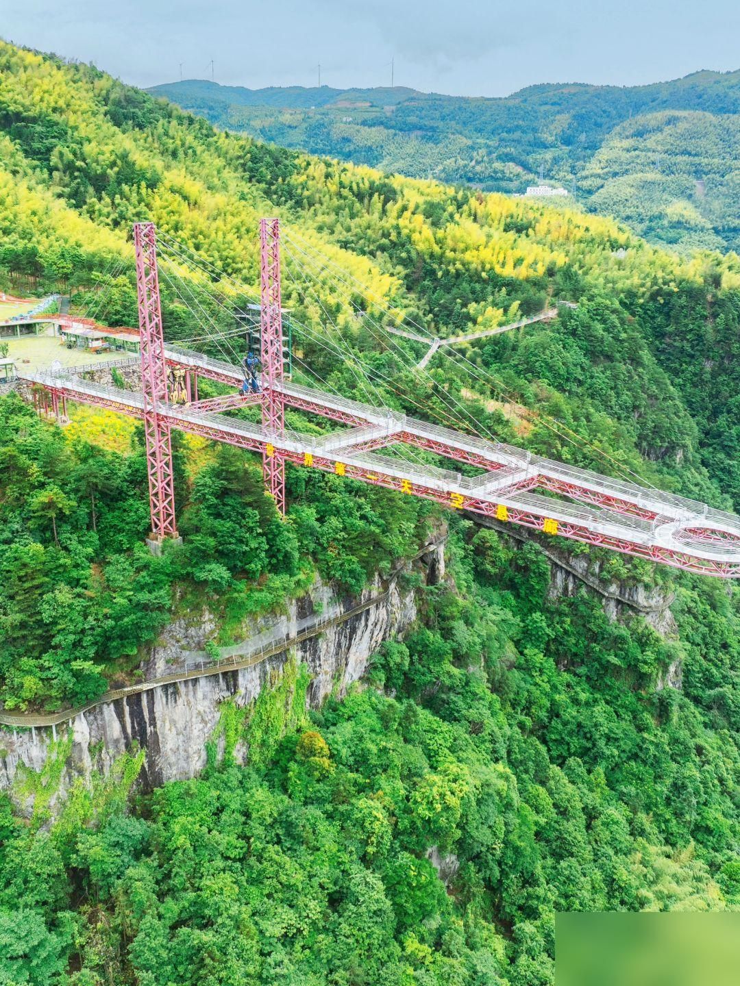 这里有华东第一高空景观人行玻璃桥,由98块全透明玻璃组成,长度365米,高度189米