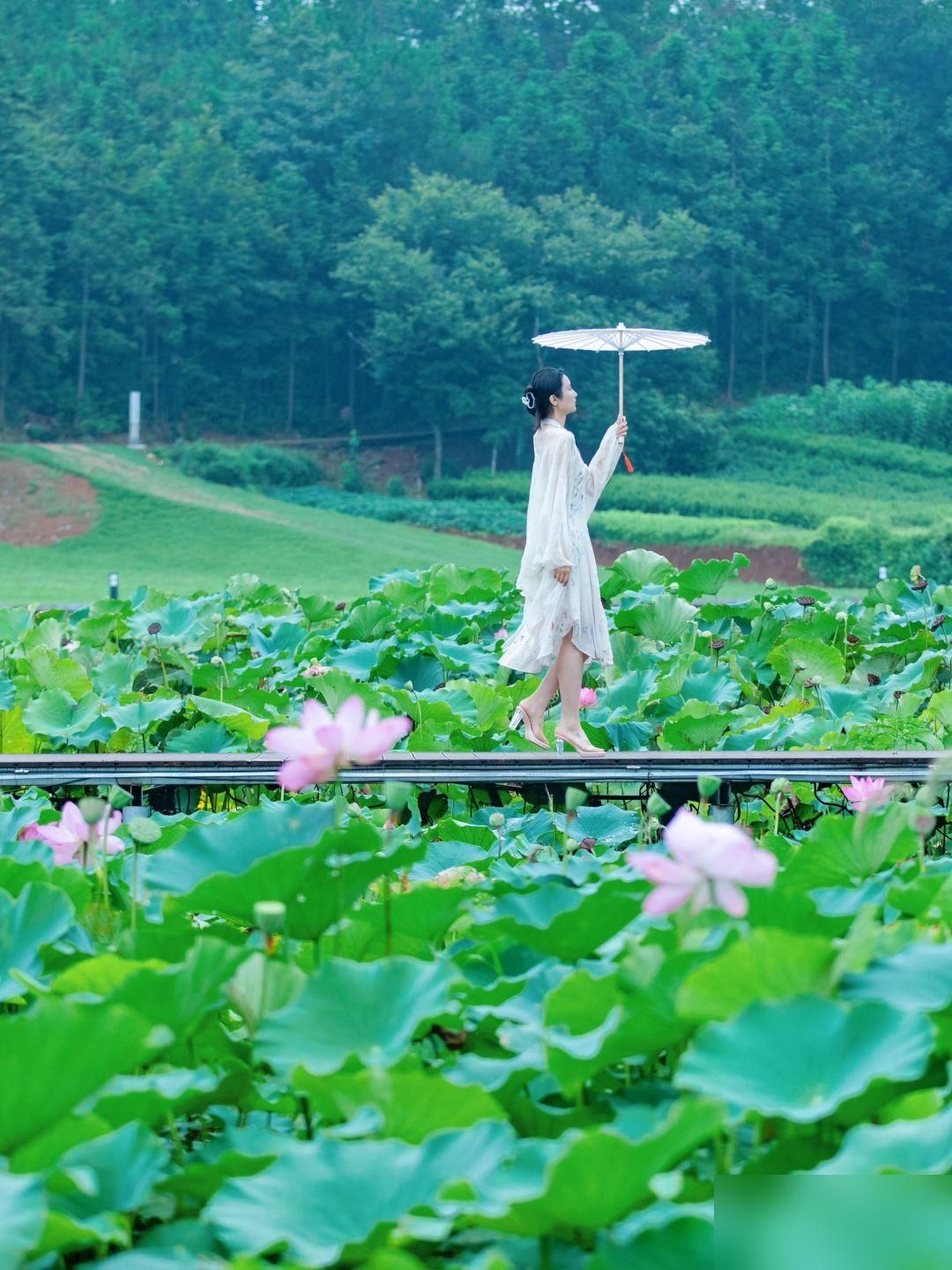 好多漂亮的小姐姐来这边拍摄荷花写真呀