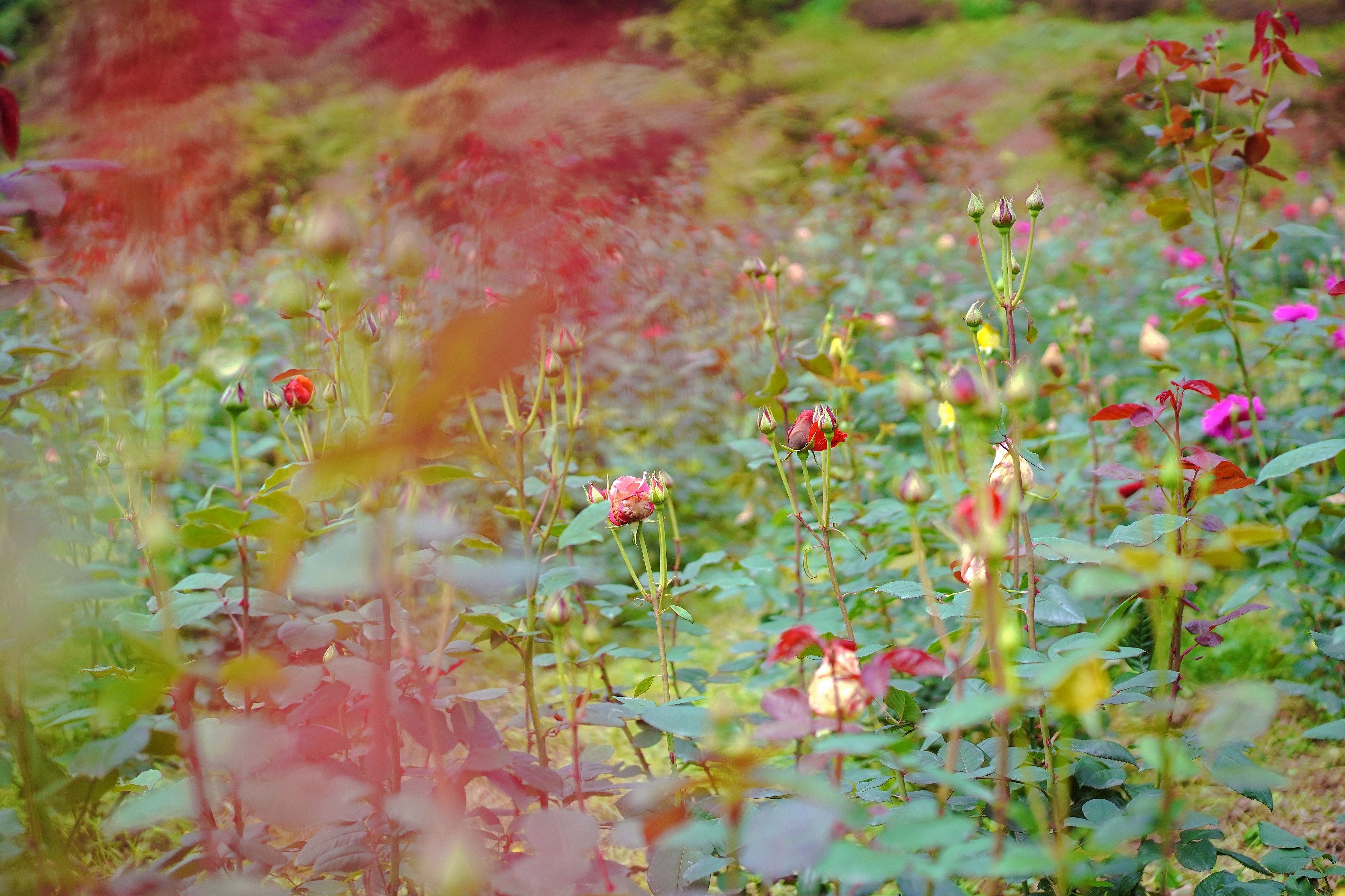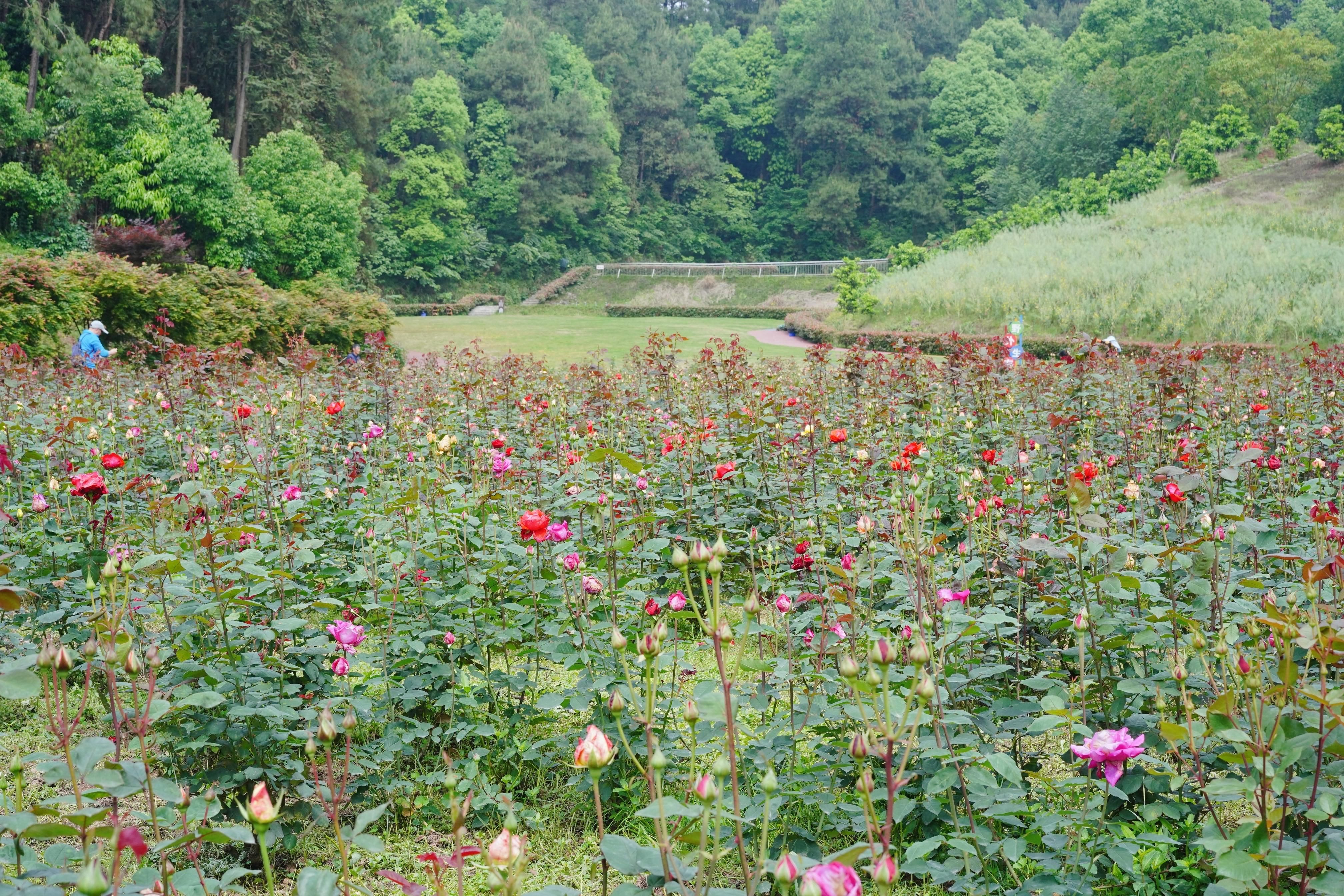 湖泊的左侧,有一片山谷,山谷里野趣盎然,可以带小朋友去观察植物、昆虫,这里有20万株多头玫瑰,并且有深红、粉红、黄色,娇俏动人。