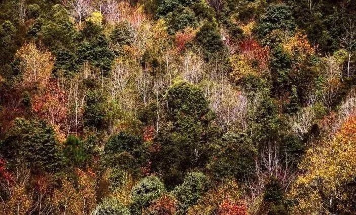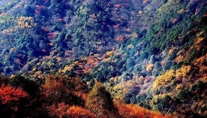 灵山的这个季节缤纷多彩,千峰浮沉,绵亘百里,秋季枫树着红,层林尽染。