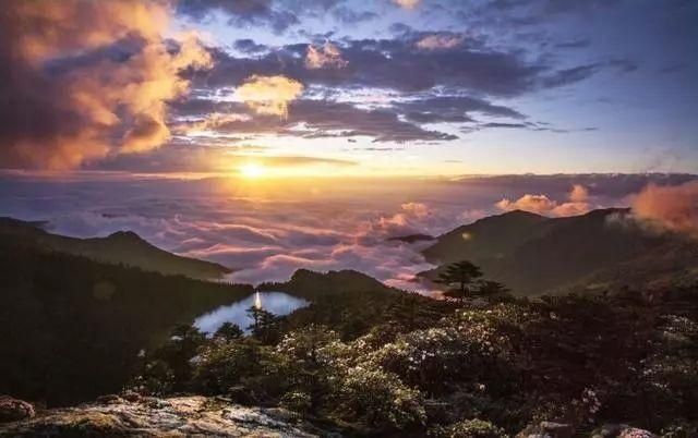 一日可观三景:朝赏晨曦,云路奔涌,红日喷簿;午观山色,阴晴变幻,如洗似染;暮眺群山,峰岭苍茫,烟菲云霭,所到之处,古木成荫,绿苔如毡,野花争妍,漫山遍野,姹紫嫣红,五彩缤纷……