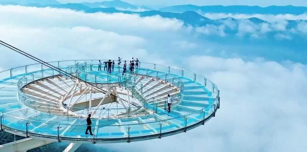 3、阳新天空之城。休闲好去处。位于黄石市阳新仙岛湖千里山山顶,适用于俯瞰观赏仙岛湖千岛胜景的巨型乳白色钢架玻璃观景平台,又称天空之镜。玻璃总面积约为1500平方米,是目前国内最大的单个玻璃平台,堪称现代工程与大自然奇景的完美结合。在这里可以玩丛林穿越、镜子迷宫和悬崖秋千。