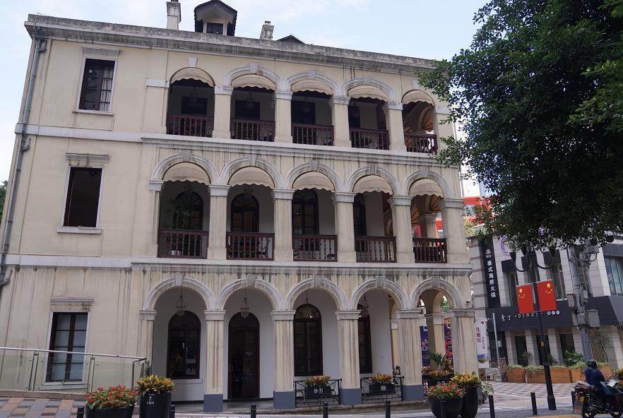这是我们无意中发现的一幢建筑,在繁华街道的转角处,米黄色的外墙上已经泛出旧旧的痕迹,白色的雕花和拱门,木质围栏还有水晶吊灯,都让人以为穿越回了民国时期。我们没有上前咨询能不能进去,但我想多半是不能进去的,应该是别人的办公区域,但是建筑外观已经非常有感觉了,人来人往的街道一边拍过去,分分钟出大片。