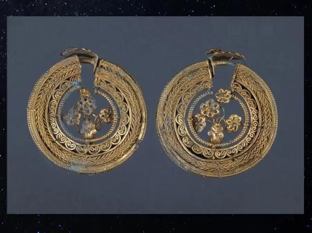 大理国金藤编耳饰,如今陈列在云南省博物馆内。该耳饰呈金质圆盘状,以连珠纹、辫纹、如意卷云纹等围成圆盘,正中镂编缠枝宝相花纹,制作精巧繁复,典雅秀丽,颇具特色。