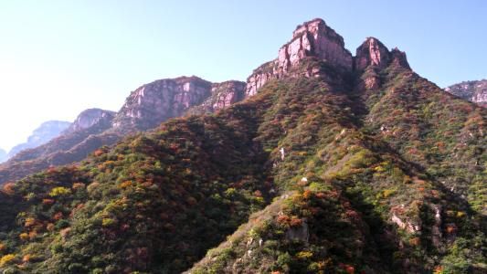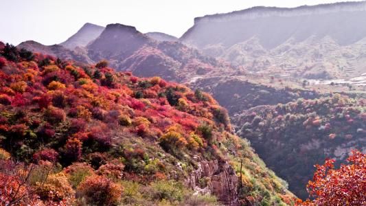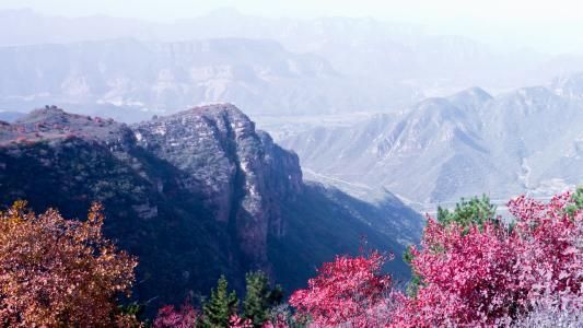 深秋时节,满山的树木五彩缤纷,层林尽染,形成彩林的秀美景观。其中那黄栌叶,在阳光的照射下显得通透明亮和别的地方有极大的不同。极目远眺,远山近坡,鲜红、粉红、猩红、桃红,层次分明,似红霞排山倒海而来,景色美轮美奂,瑰奇绚丽,是摄影家创作的好去处。
