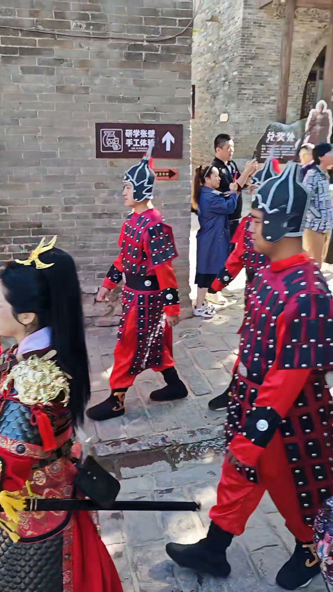 张壁古堡里边的长桌宴又叫行军宴,张壁古堡里面的武士西门,关闭西门,这俩武士挺棒。仿古寻城,后头就不成了,后头就不成了寻城,武士寻城,古堡的北城门非常厚实,里头空间很大,这是古堡,两边都是各种的大院,一座一座的,但是也都商业化了,有商业化了,院子里头要不住宿,要不吃饭,要不卖小吃,保护的还挺好。