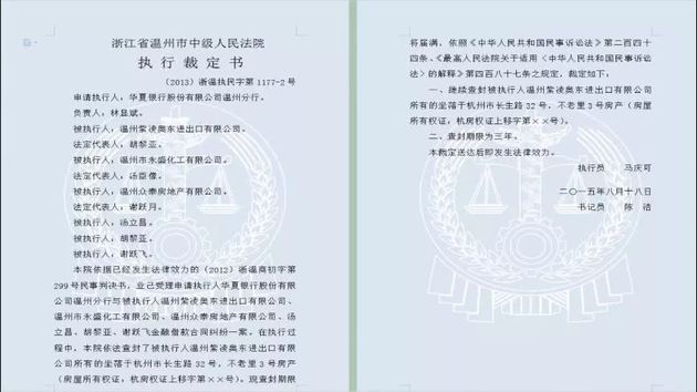 目前,该房产的拍卖主体为温州市中级人民法院,产权归属于温州紫凌奥东进出口有限公司。