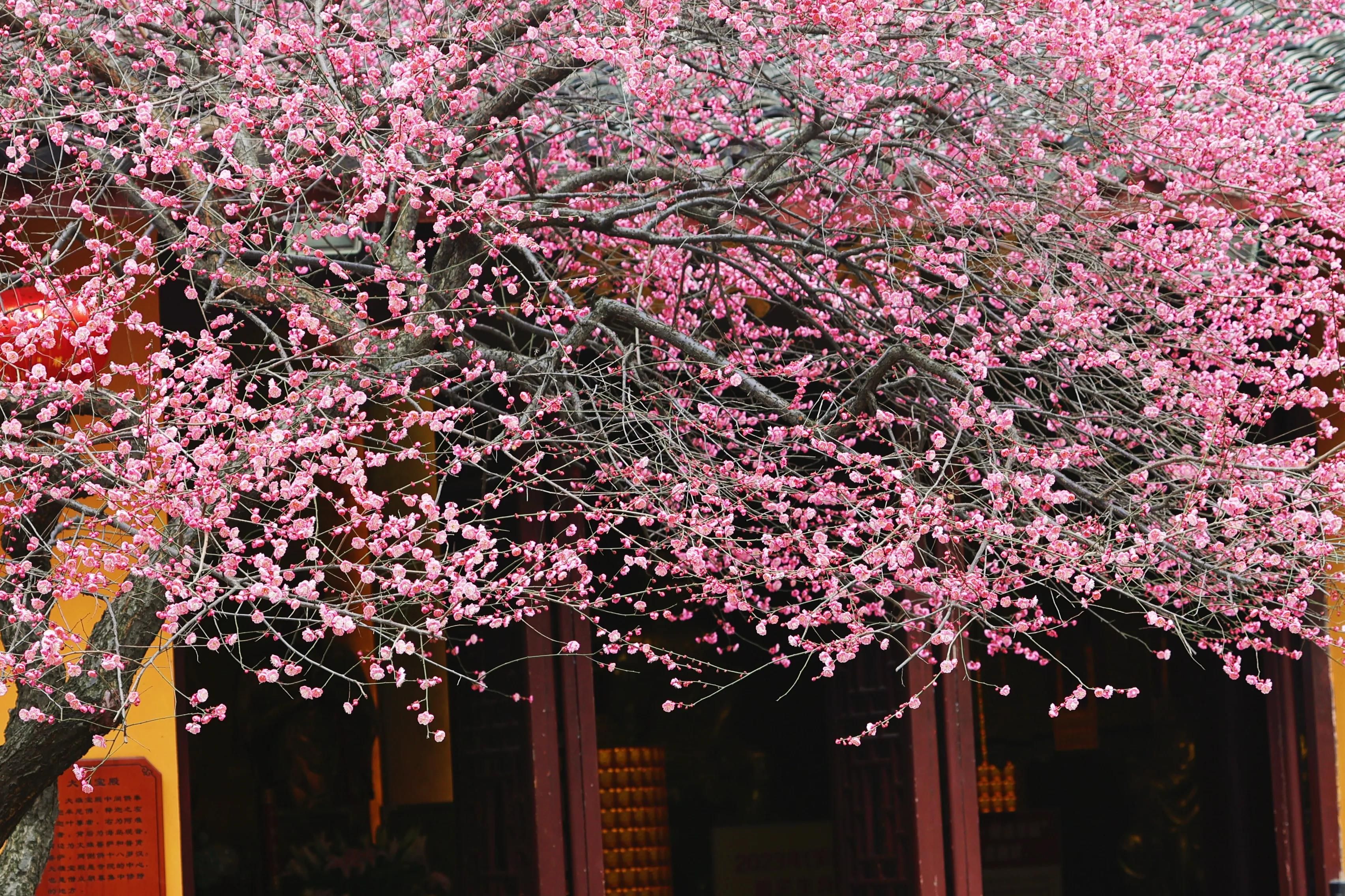 到了盛开季节,漫山遍野的梅花竞相绽放,此起彼伏的佛诵和佛号声,为整个山林营造出了一种祥和的氛围。