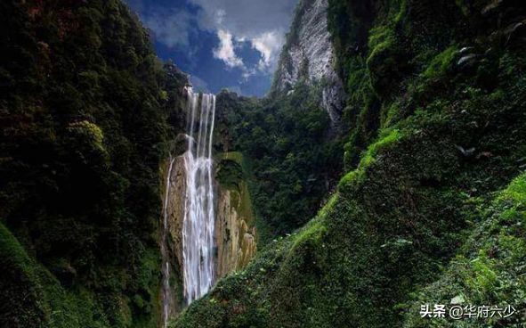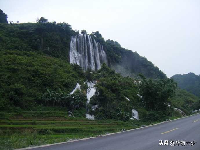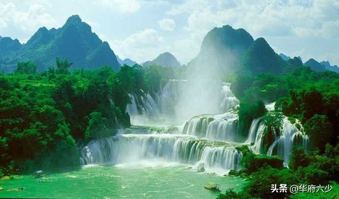 4、冷水瀑布——位于广西壮族自治区西北与贵州省交接的隆林县境内。隆林县地处金钟山区,北有南盘江奔腾绕过,南麓是右江的源头,地势险峻,溪流众多。在冷水屯的梅达山,一条地下暗河突然汹涌喷出地面,河水越过层层峭壁,形成了绵延20里的72座大小瀑布,这便是冷水瀑布。