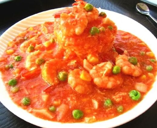 番茄虾仁是澄城著名的地方菜式之一,主要材料有虾仁、辅料有番茄、豌豆、鸡蛋清等。番茄虾仁色泽鲜红,虾仁软嫩。但它的做法非常简单, 虾仁开边切小,西红柿滚刀切,青椒切丝。虾仁,蒜瓣热油下锅,翻炒迅速,然后下西红柿和豌豆,精盐少许,继续翻炒,速度放慢,待汤汁快出来时放入青椒丝,翻炒,西红柿逐渐融化,汤汁开始溢出,此时保持大火,翻炒,同时勾芡,加入鸡精少许,拌匀后起锅上盘。
