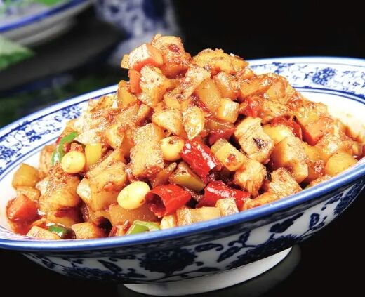 八宝辣子是澄城最传统的一道菜,也是当地宴席上必不可少的一道菜。配料众多,故名“八宝”。有三样是不可少的,一是辣椒面,二是咸菜丁,三是大肉丁。其他可因季节不同,就地取材,再加入别的料。最终成品颜色红、绿、白、黄、黑,煞是热闹好看,口感也会“群星荟萃”,那香、那味,直叫人流口水。近年来,八宝肉辣子经不断改良,已不仅是蒲城人的绝活,更是陕西乃至全国人民向往的美味。
