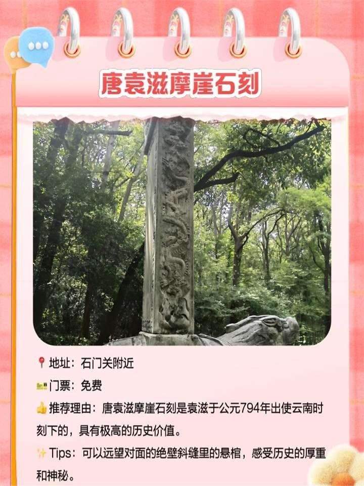 地点:位于石门关附近,是公元794年元子出使云南时留下的石刻。