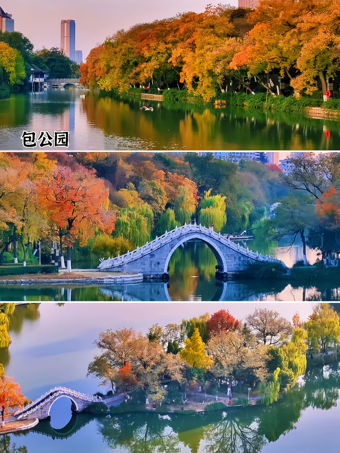 包公园古朴典雅,乌桕树叶红黄相间,在桥上漫步,仿佛穿回古岱,美感十足!还有清风阁的银杏树记得来观赏噢!