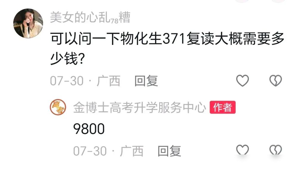 复读生的费用根本不会如此丰厚,反而会花更多的钱。