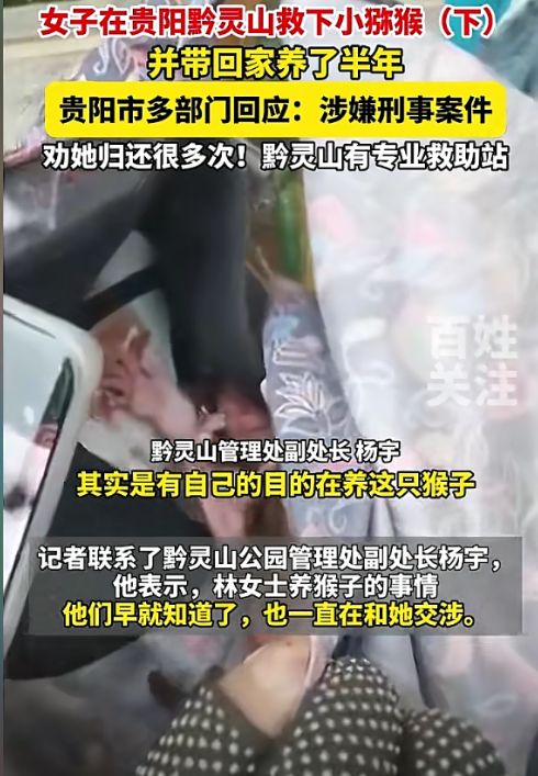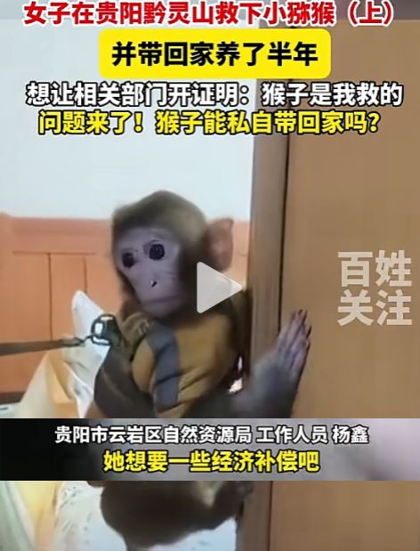 (信息来源:贵州广播电视台;2024年11月17日关于《女子在贵阳黔灵山救下小猕猴,带回家养了半年,想让相关部门开证明:猴子是我救的》的报道)