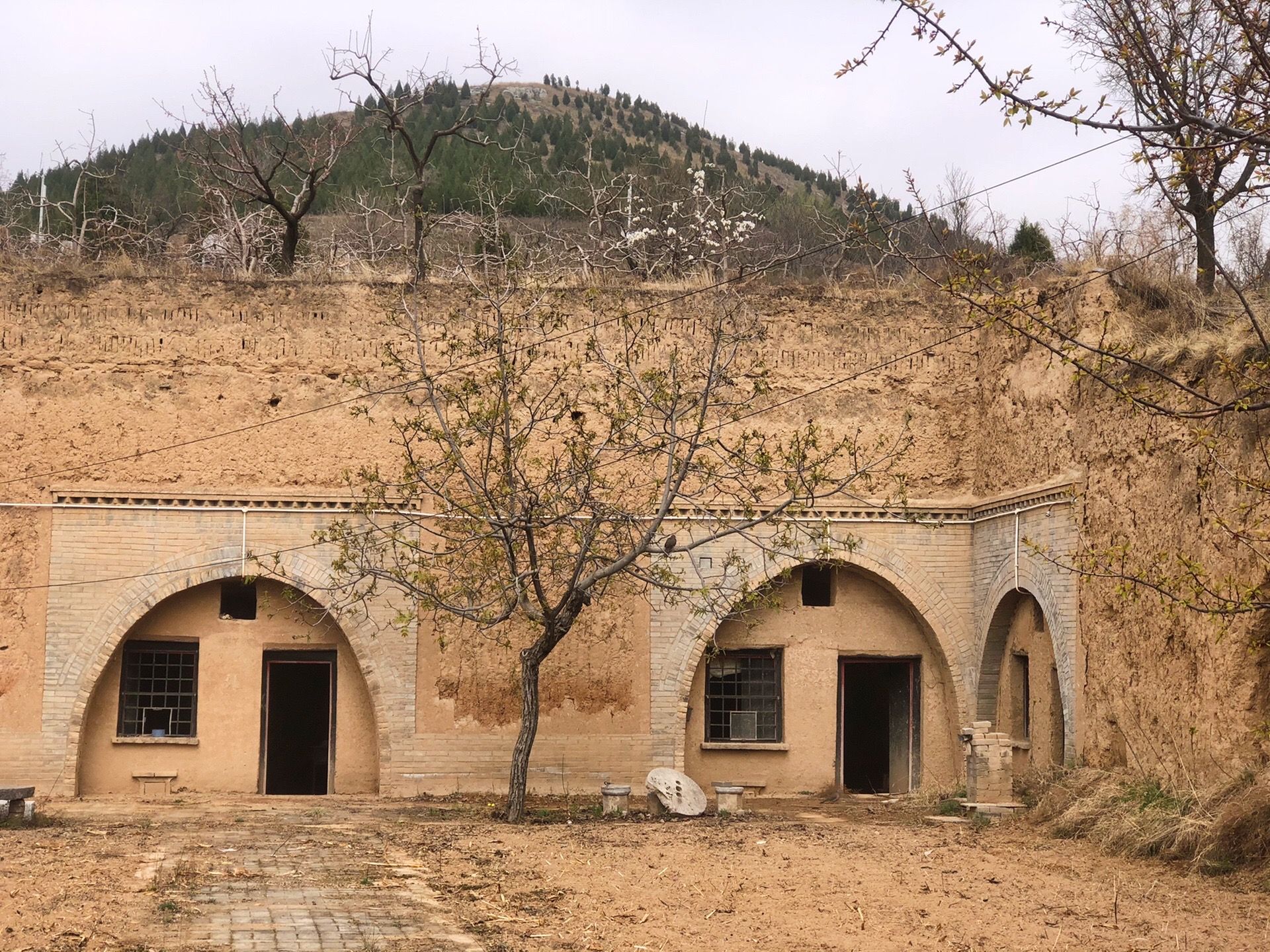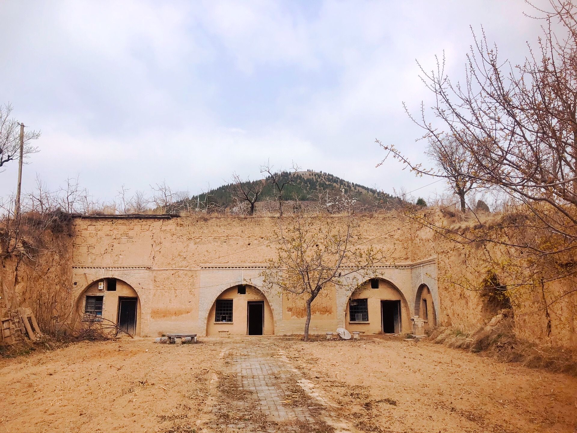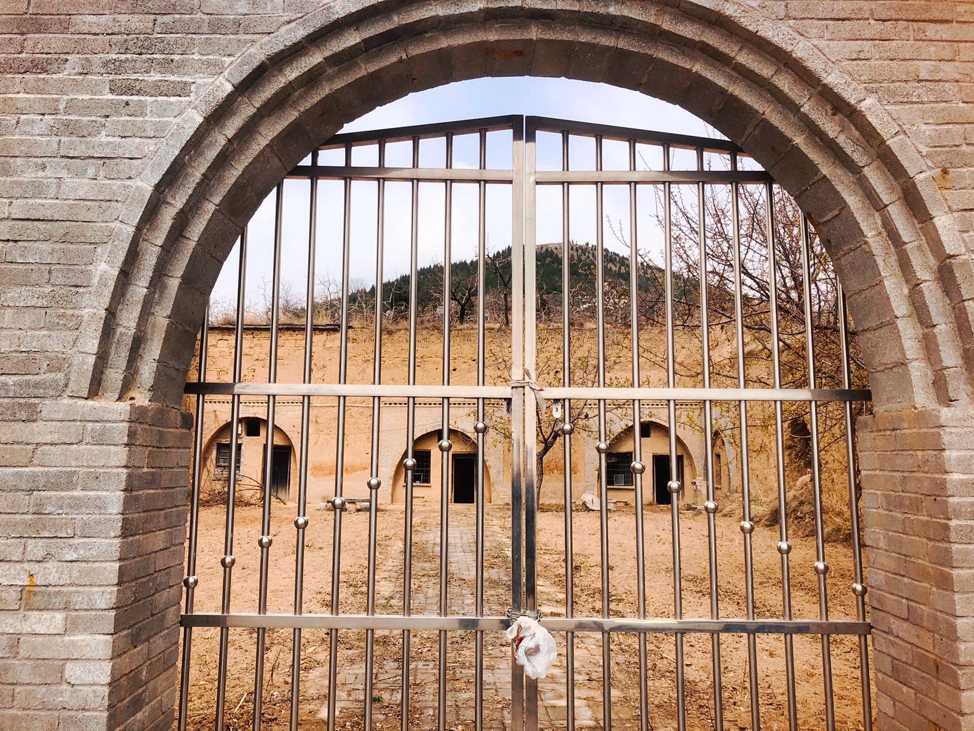 整座窑洞大院,面阔三间,在东面围墙上可看到窑洞样式的厢房,大院内有用砖块铺设的走廊,除了少量农具的摆放和一棵可能是槐树的小树之外,肉眼观察到的关于这座窑洞大院的线索实属有限,另外,整座窑洞大院门口的不锈钢大铁门,实在有些潦草和敷衍之意,人在旅途就是对未知的东西最有兴趣,我在想这里曾经住的人家去了哪里、是做什么的、里面的窑洞是何种样式等,很可惜大门紧锁,只可远观……