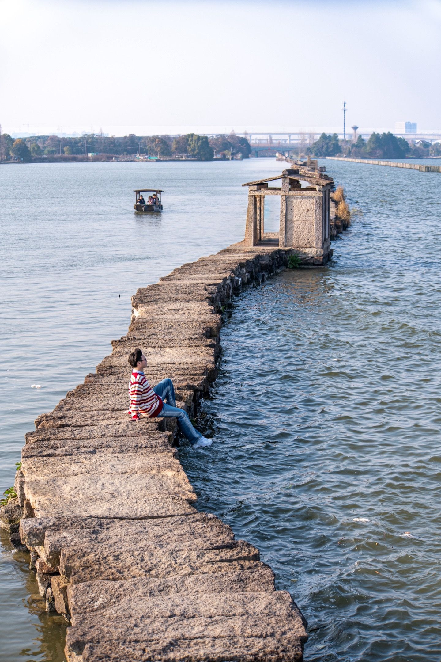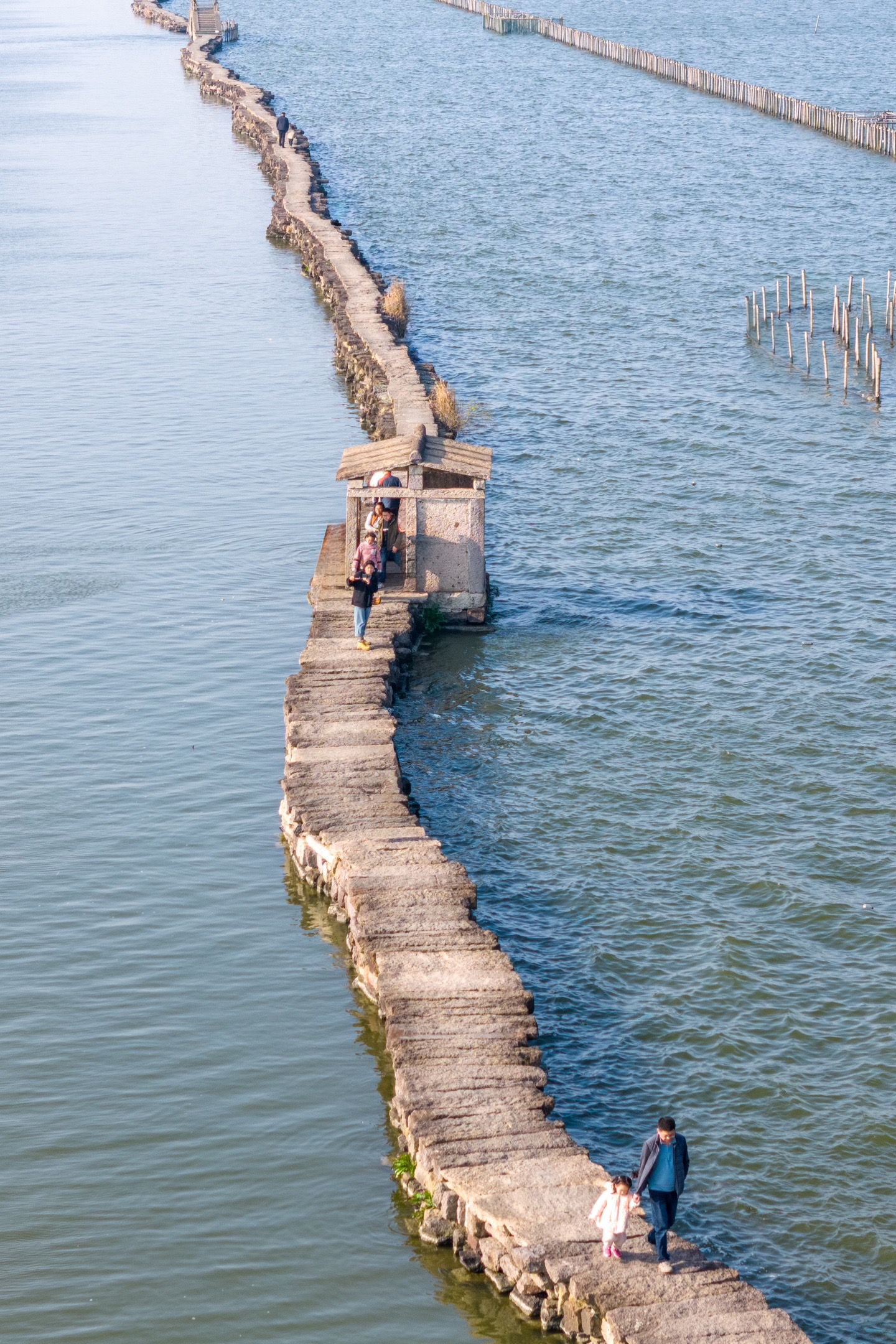 湖上这座横跨南北的石桥路,是400年前古人行舟拉纤的通道,走在古纤道上,吹着湖风,仿佛能穿越回那个古老的年代,感受到古人的智慧与勤劳