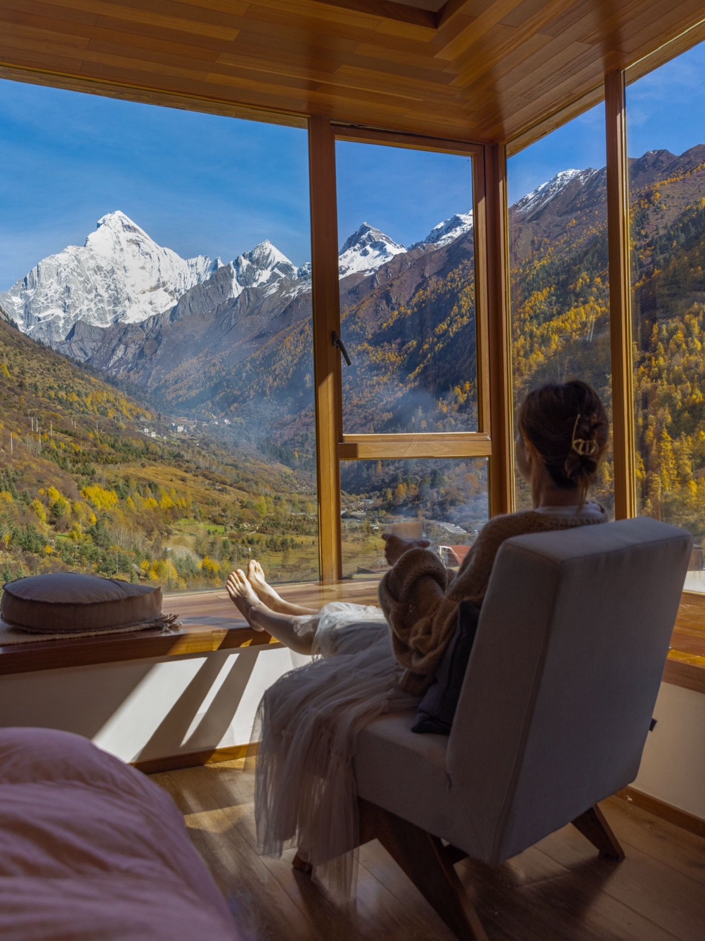 这里每扇窗都正对雪山!地暖全天开放,一共只有六间,很安静.