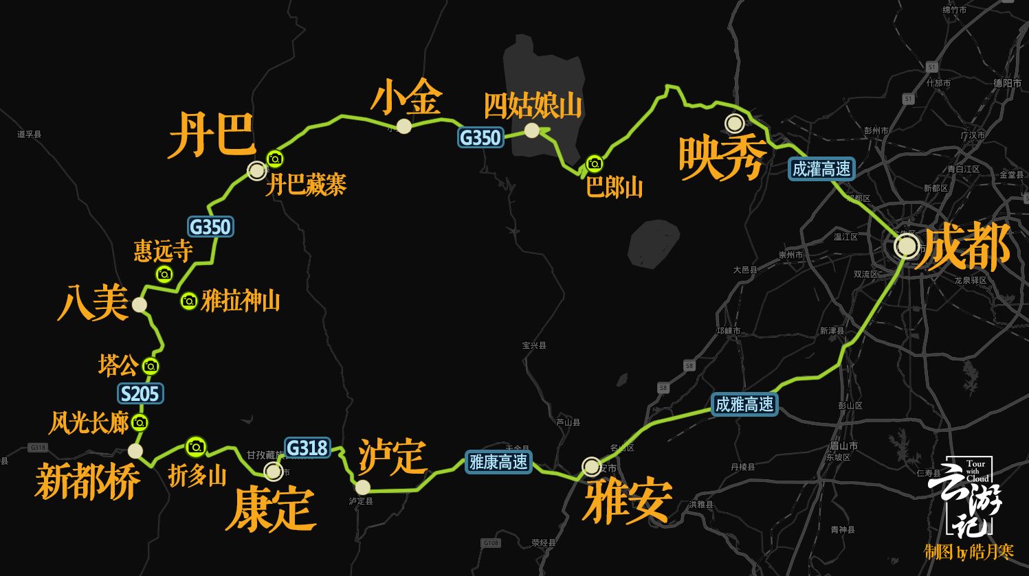 看点:雅康高速、泸定桥、折多山、新都桥风光长廊、塔公寺、雅拉雪山、丹巴藏寨、四姑娘山、巴郎山