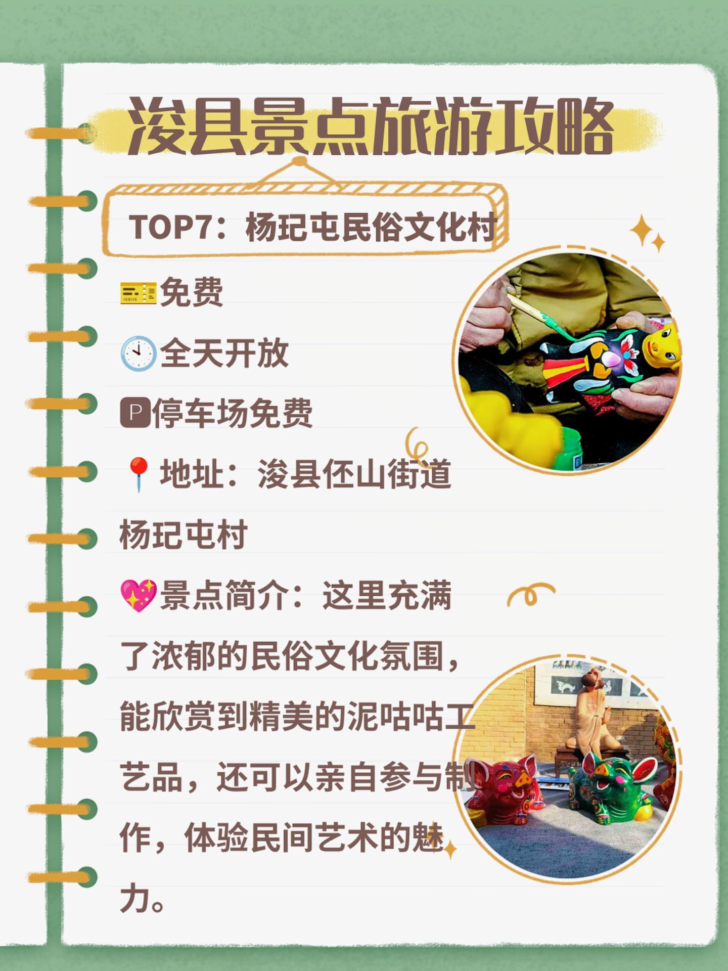 景点简介:这里充满了浓郁的民俗文化氛围,能欣赏到精美的泥咕咕工艺品,还可以亲自参与制作,体验民间艺术的魅力