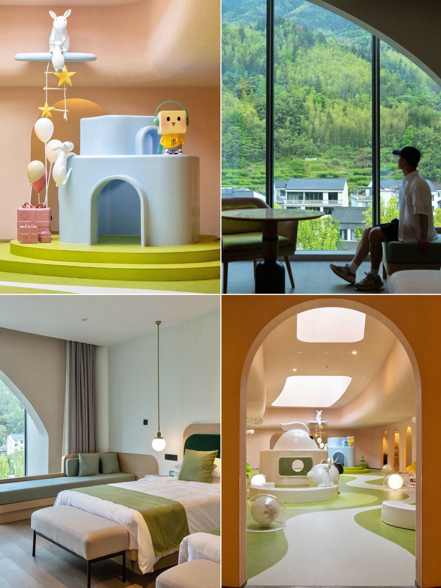 我们住在游客中心边上的“稻草草与积木木酒店”,是用稻草人+积木的IP玩偶打造的亲子酒店。房间清新明亮,窗外就是高山云海,住着很舒服~从酒店步行几分钟就到索道站。这里还有一个梯田博物馆,不要错过咯~