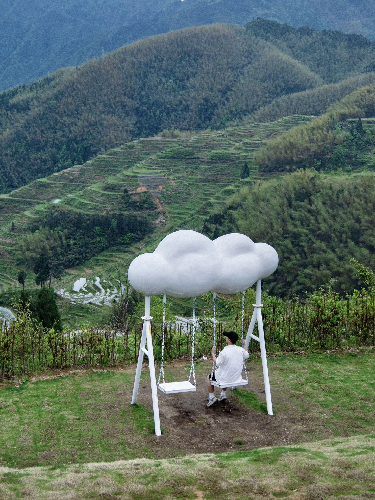 七星墩:可打卡观云索道白银谷站二楼的“云端美咖”,点杯咖啡俯瞰梯田全景~记得打卡山顶处的云端秋千。