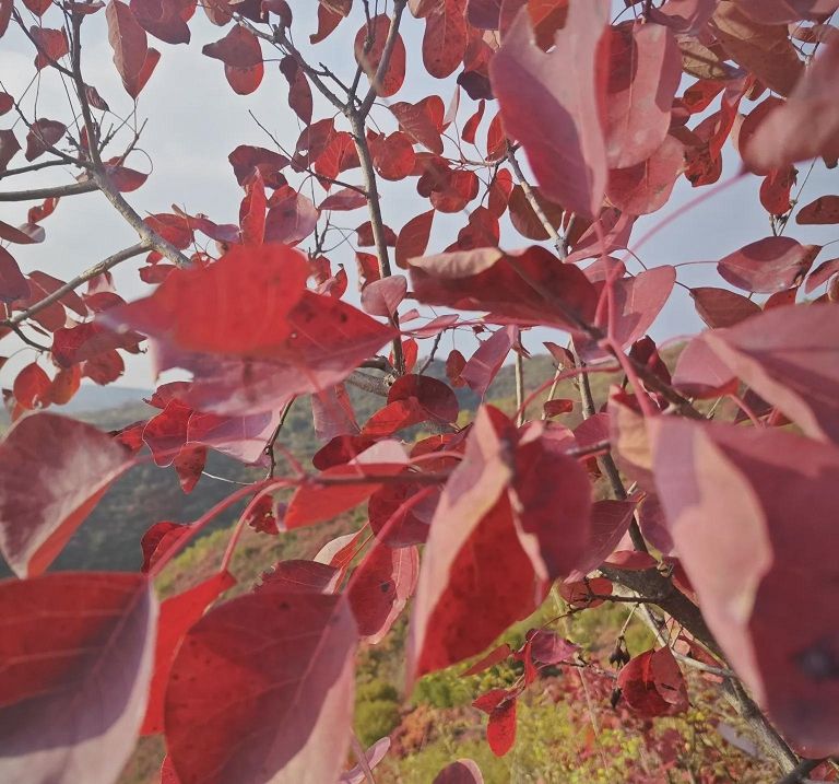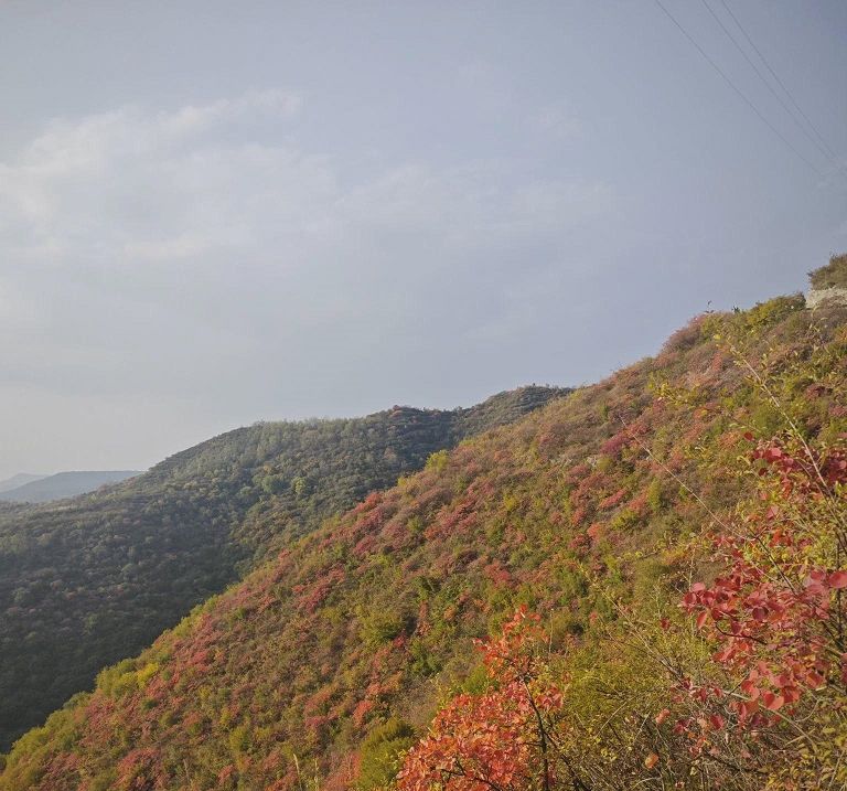 红叶满山红,秋意正浓,富平县县城北30多公里的山已成红叶景区,除了路窄点