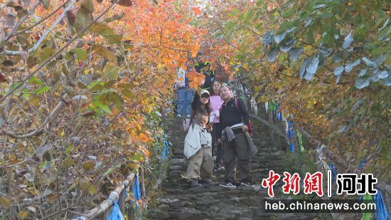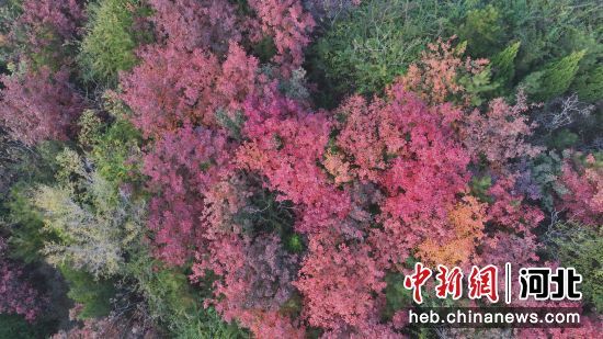 中新网河北新闻10月29日电 (韩聚晓 翟磊 史永刚)深秋时节,位于石家庄市鹿泉区的西部长青景区进入了一年中最美的季节,漫山红遍,层林尽染,好似一幅色彩斑斓的秋日画卷。