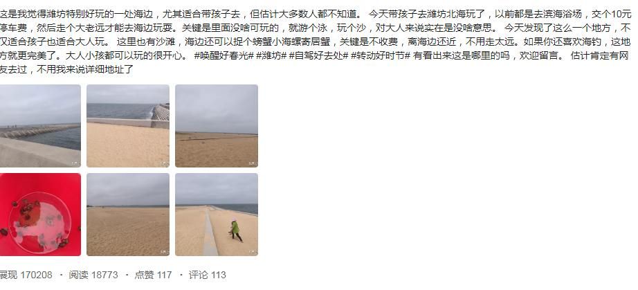 昨天我发了一个微头条,是关于潍坊海边玩耍的。因为我是当爸的人,经常喜欢带着孩子出去玩,昨天恰好去了一个我认为潍坊带孩子玩耍比较适合的地方。