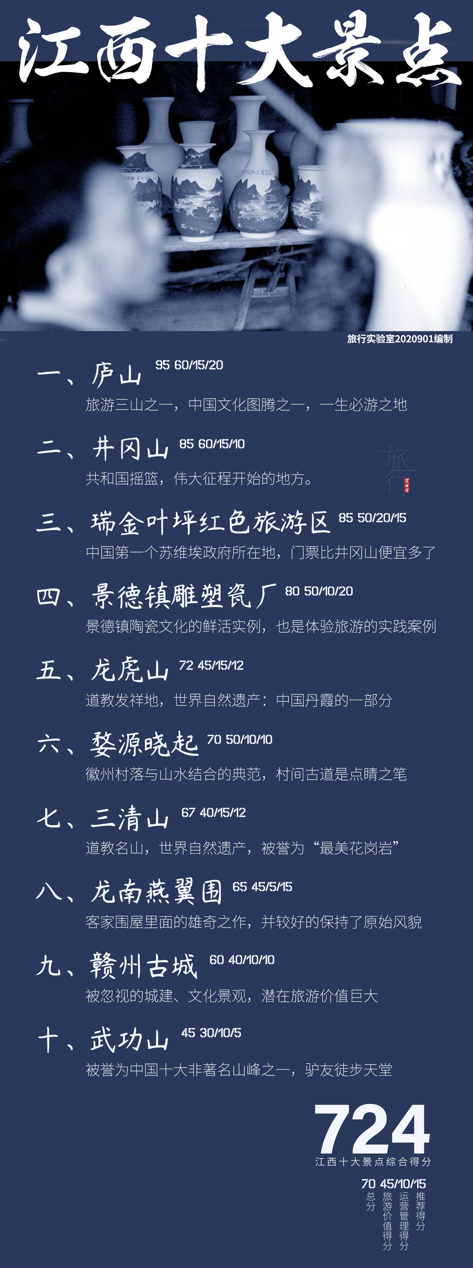 通过上面的排名可以发现,江西山水与文化结合得非常紧密。