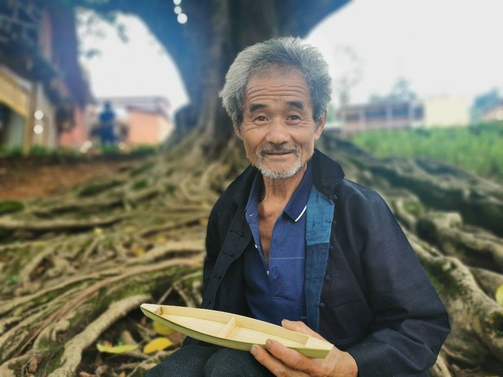 在一棵成长了千年的大榕树下,几名老者一边乘凉,手中还忙活着什么。走近一看,有的在刺绣,有的在劈竹子,有的在编竹篮,一派悠然自得。 今年78岁的李贵兴正在用劈好的竹块和竹片制作木船,老人自己也没想到,闲来无事制作的小玩意儿,如今竟成为景区亮眼的纯手工工艺品,受到众多游客的青睐。