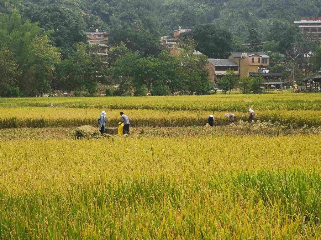不知不觉船到岸了,拾阶而上,沿着乡间小道往里走,眼前的景象豁然开朗,秋风拂过,浓郁的稻香扑面而来。稻田里,几名壮家人正在辛勤地劳作,灵动的蜻蜓在他们身边追逐飞舞。不远处,流水潺潺,水车吱呀作响,翠竹掩映间,带着壮乡风情的民居、民宿错落有致……“土地平旷,屋舍俨然,有良田,美池,桑竹之属。”一切都令人惊叹,这不正是陶渊明笔下的世外桃源吗! 踏上这片恬静古老的小村,现实的嘈杂似乎都消失了。