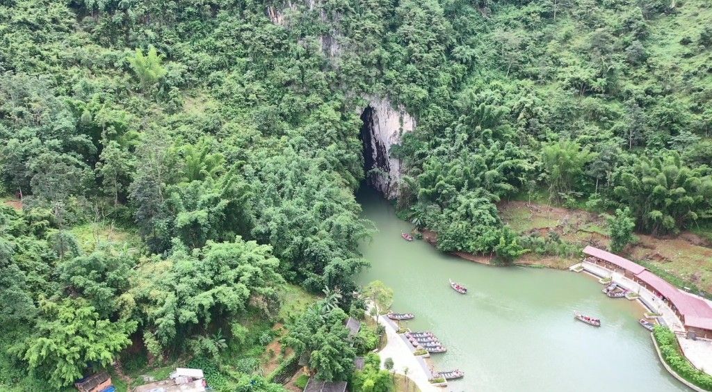 想要进入坝美村,必须得乘船经过800米长的石灰岩溶洞。狭窄的幽暗洞口送出阵阵清凉,引得人们迫不及待要穿过它,去探寻坝美村那“与世隔绝”的神秘。