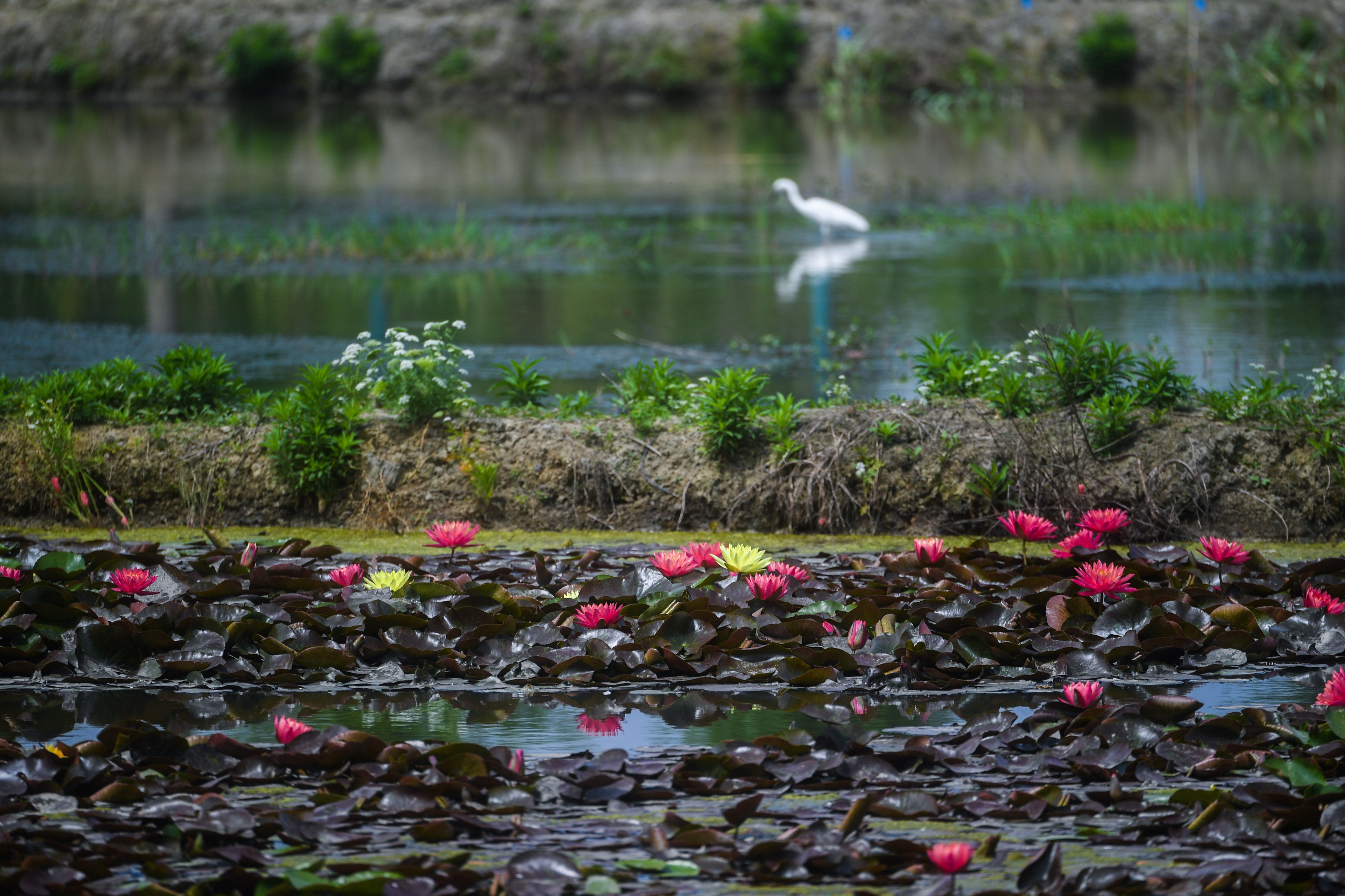 在东林镇东方村,水田里种植的睡莲盛开(5月7日摄)。 新华社记者 徐昱 摄