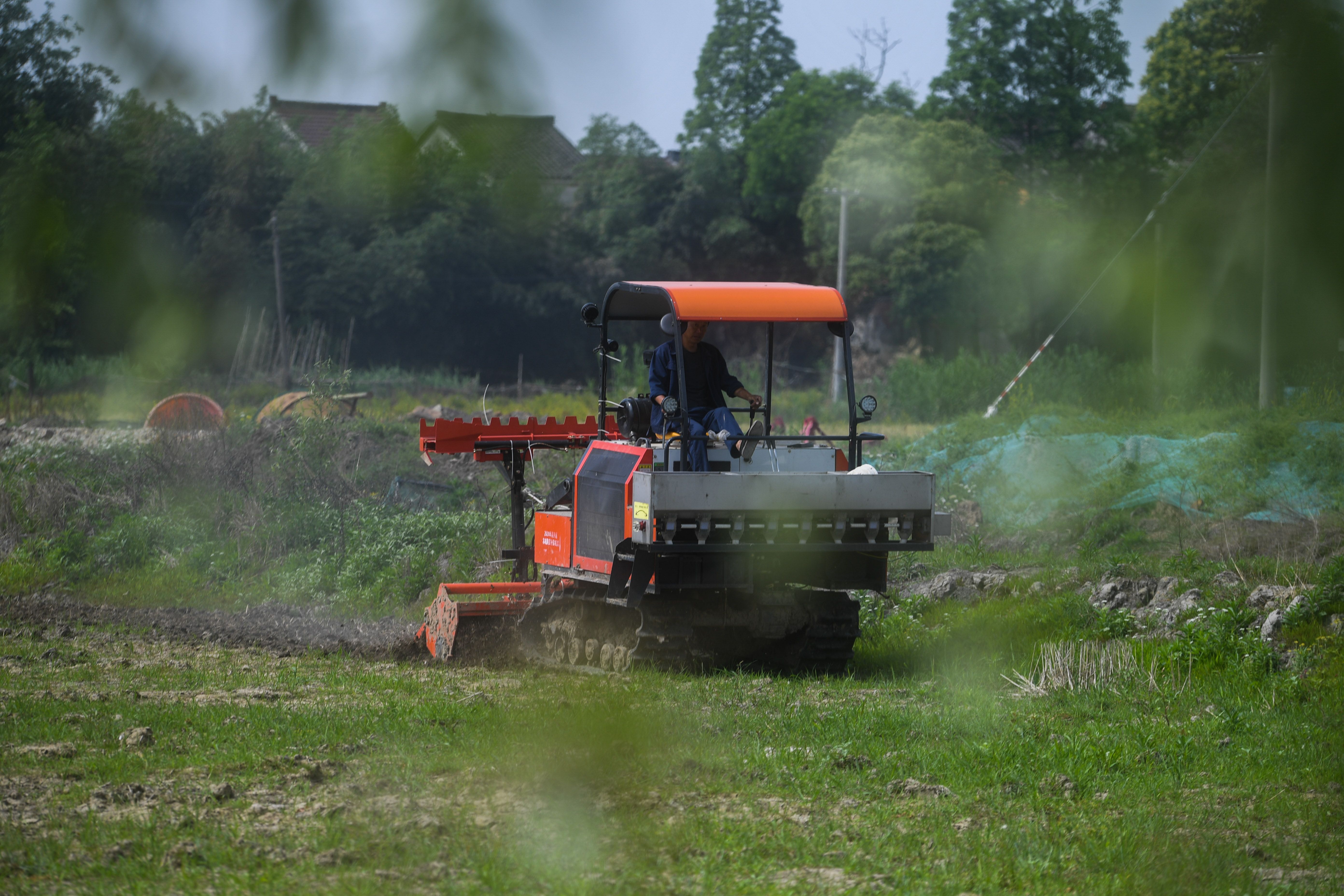 在东林镇保永村,种植户操作旋耕机耕地,准备播种水稻(5月7日摄)。 新华社记者 徐昱 摄