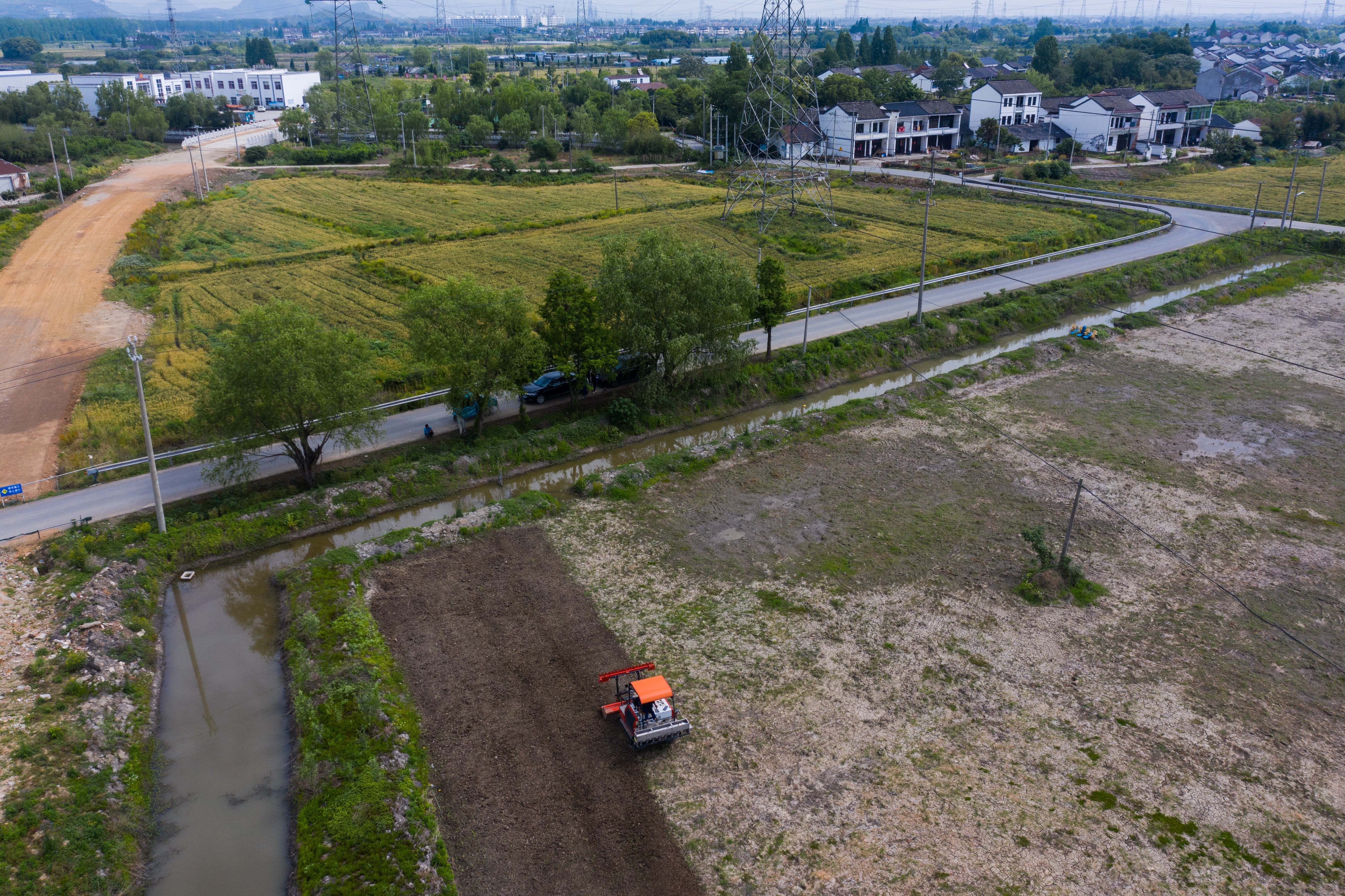 在东林镇保永村,种植户操作旋耕机耕地,准备播种水稻(5月7日摄,无人机照片)。 新华社记者 徐昱 摄