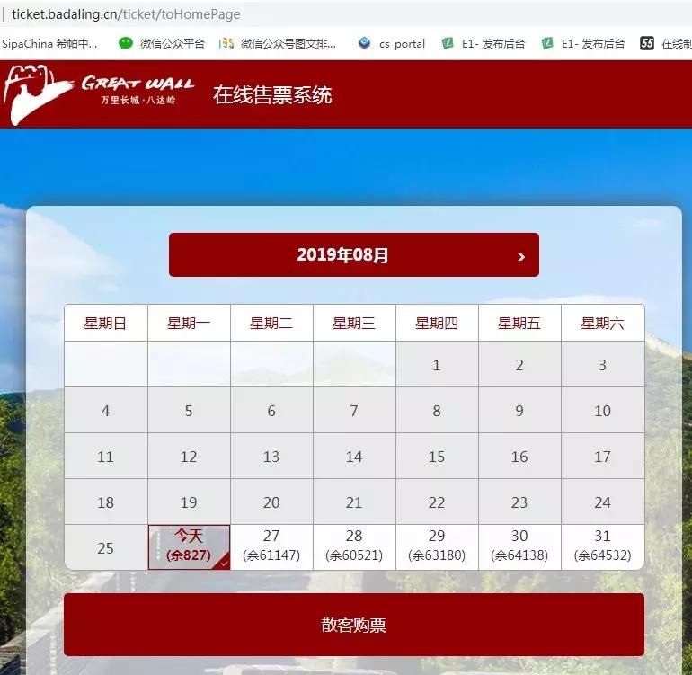 预约渠道:八达岭长城官方在线售票系统、八达岭长城景区官网或者关注八达岭长城景区官方微信公众号,使用微信购票只需一分钟。