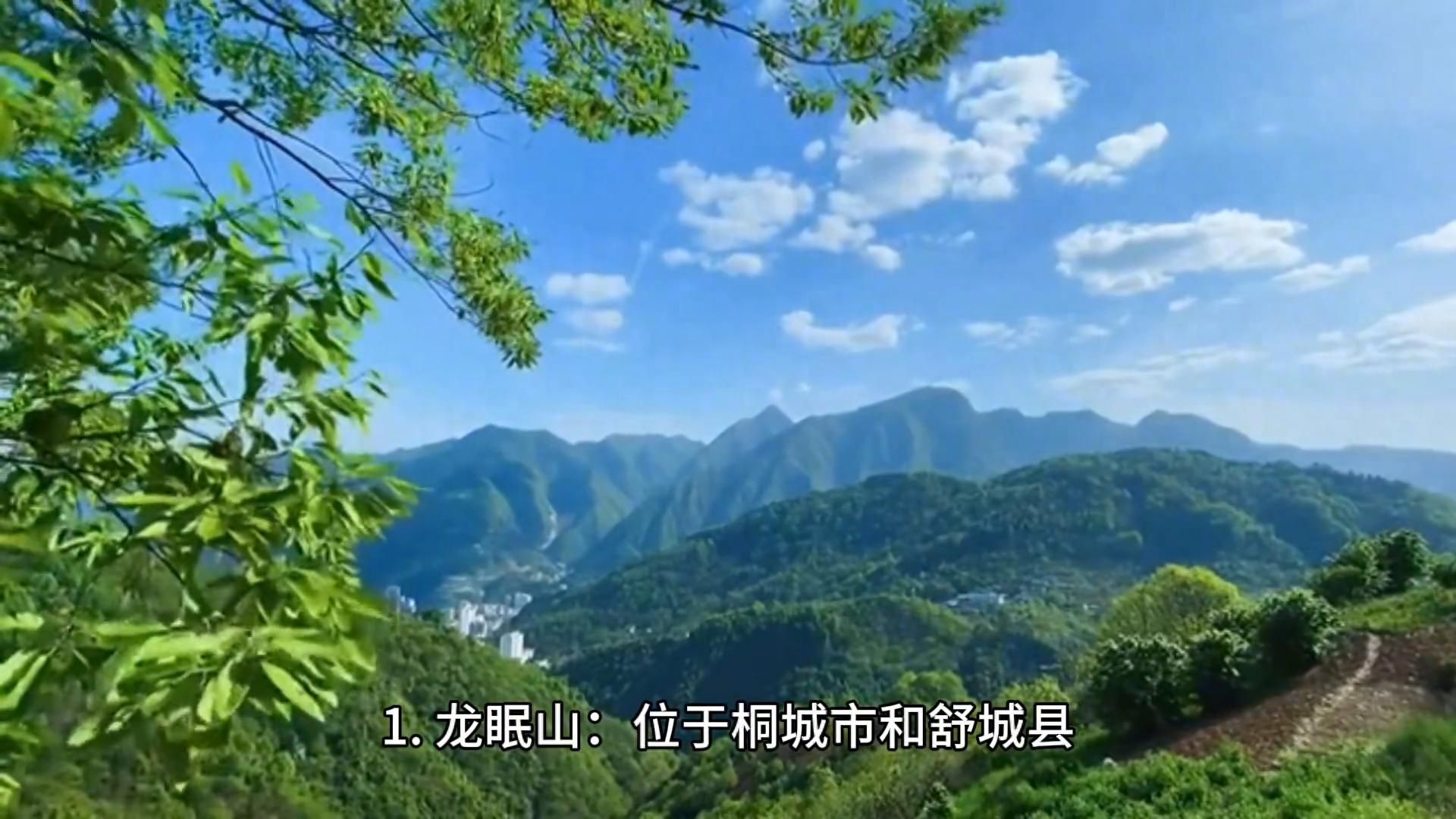 1. 龙眠山:位于桐城市和舒城县,以其蜿蜒俊逸的山脉和丰富的人文景观著称,是桐城的标志性自然景观之一。