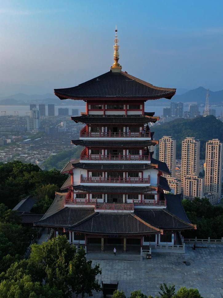 夕阳西下之时,搭乘电梯上山,就来到了绝佳的观景打卡点。在这里,能够寻觅到城市的另一种魅力。这个地方远离了城市的嘈杂,是许多椒江人心中最爱的那份悠然。来来往往的人里,有游客,也有锻炼健身的人们。都市人能够全身心地体验 “无痛爬山”,三段云梯直接把人送进绿色植被之中。这是一个既开放又充满活力,还具有生态之美的城市公园。在最高处矗立着白云阁,用无人机进行航拍,场面十分壮观。傍晚时分,远处的高楼大厦隐隐约约,与古色古香的楼阁相互映衬,非常的震撼!