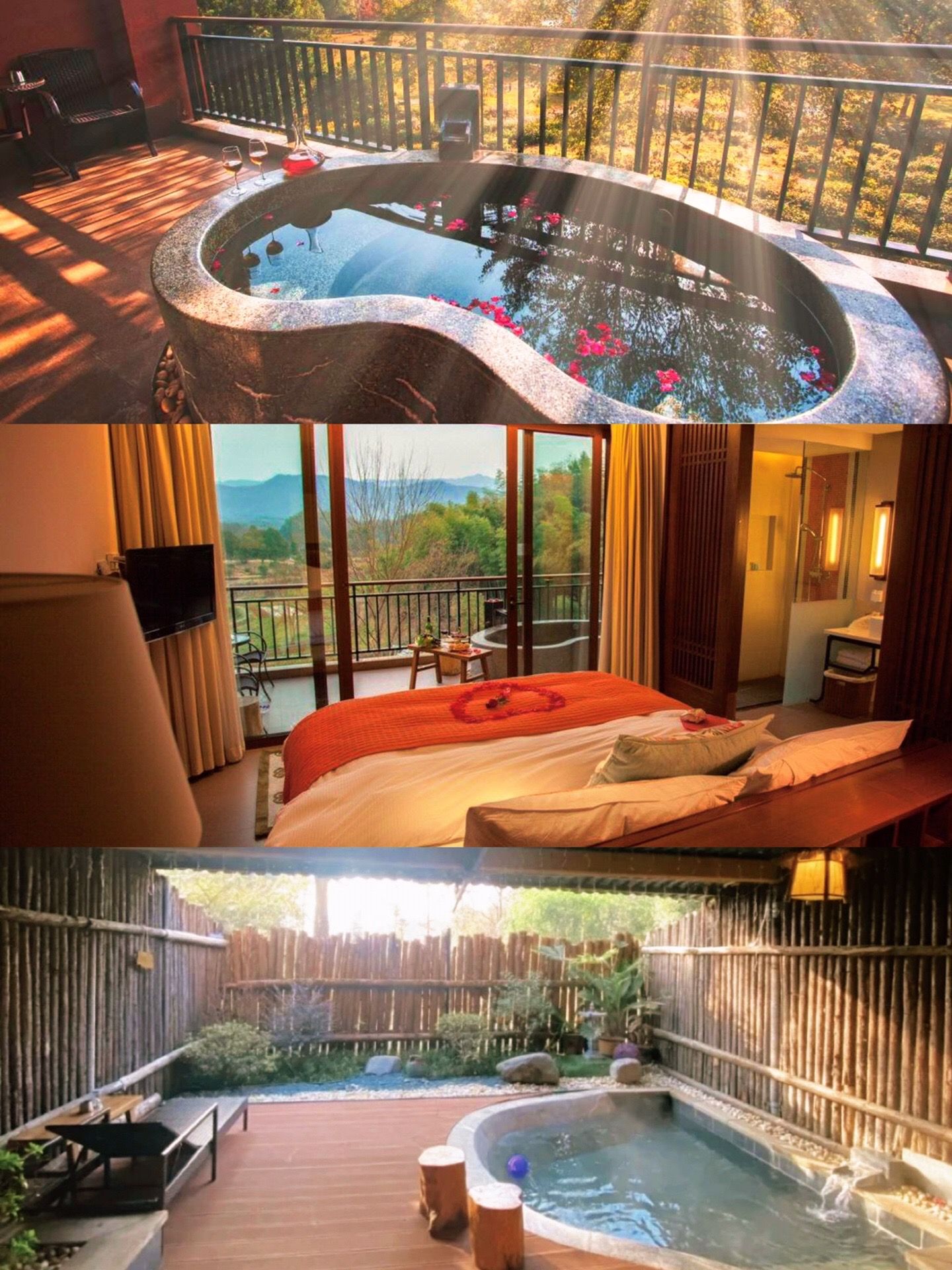 山湖温泉:MUJI风格的私汤,日式禅意满满。阳台湖景配上藤编吊灯,怎么拍都好看,情侣和闺蜜的拍照圣地!P.S 今年大放价,送夜游门票,加量不加价