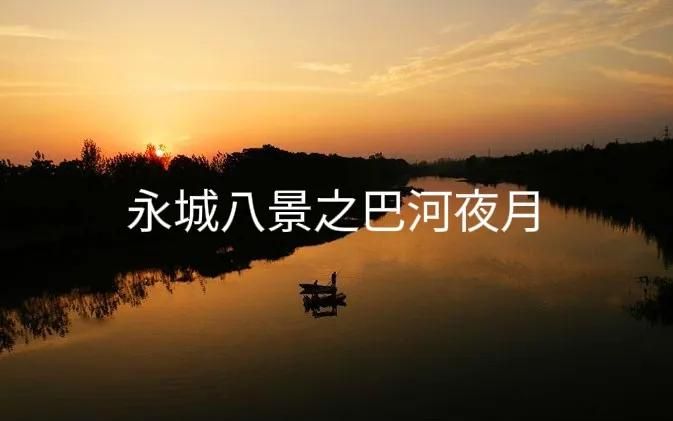 八景之五:巴河夜月(沱河支流)。源于商丘,横跨永城,汇入淮河,在永城境内长40公里。千百年来,沱河孕育了永城文明,是永城的母亲河。每当夜晚,明月高悬,月光银辉四泄,沱河溢光流彩,巴河夜月故成永城八景之一。